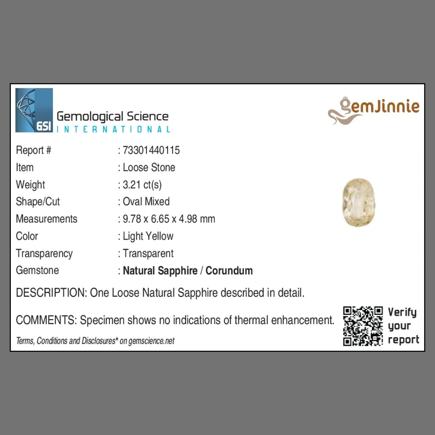 Experience the brilliance of this 3.21 Carat Yellow Sapphire (Cushion Mixed Cut), a natural and transparent gemstone from the Corundum family. Known for attracting prosperity, wisdom, and success, this stunning sapphire radiates vibrant golden hues and exceptional clarity — perfect for fine jewelry or astrological purposes
